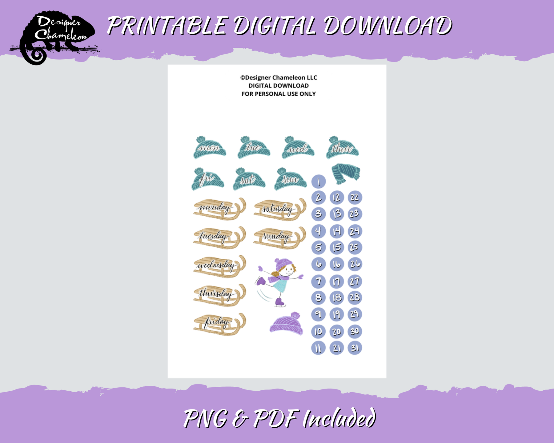 MONTH KIT -3 sheets with 90 stickers (Main Sheet, Header Sheet, Day Sheet)