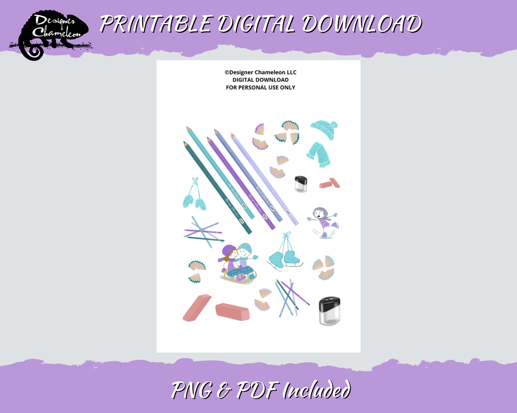 Add a fun, snow day adventure to your journal/planner with these cute pencil pals!