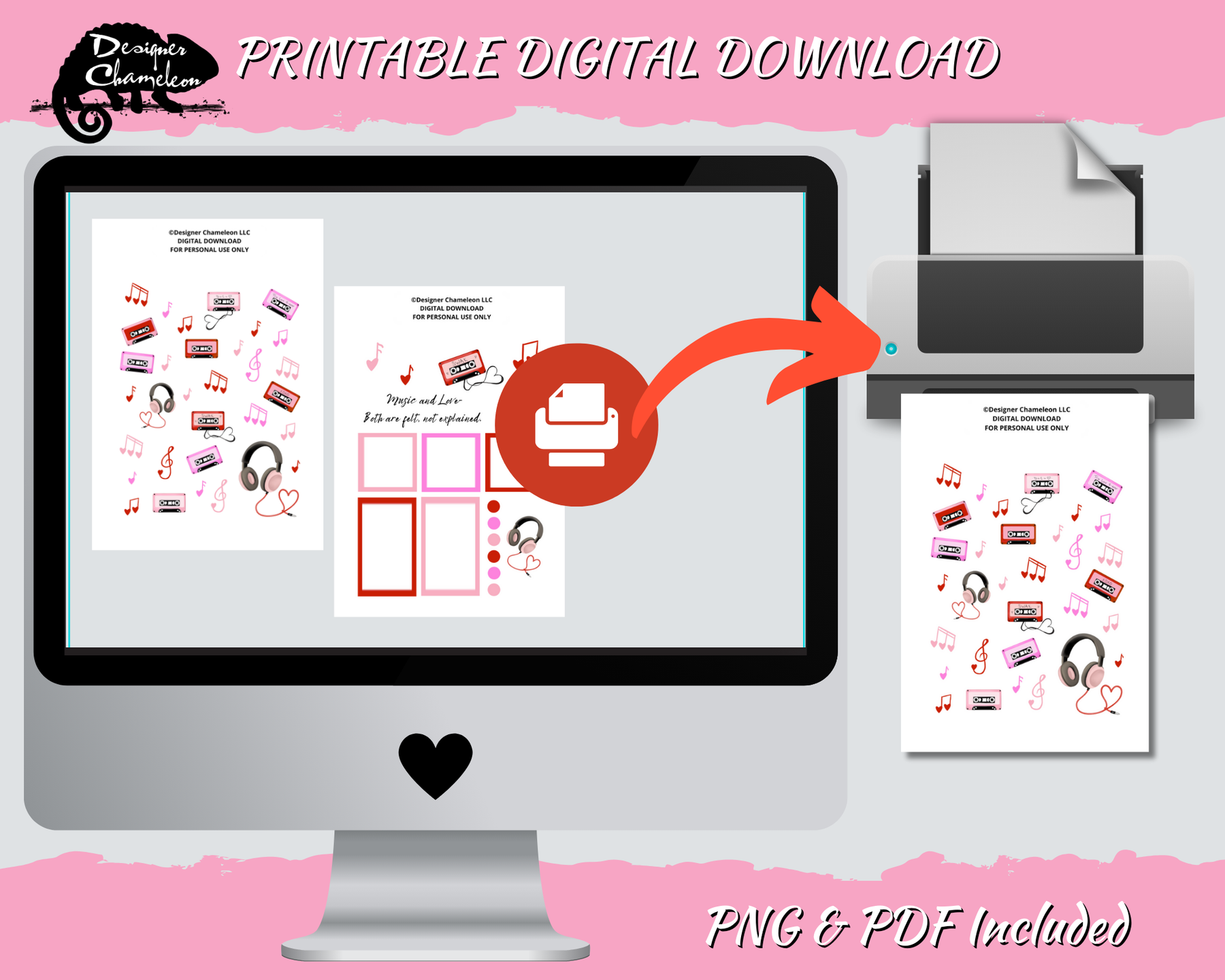 NO SHIPMENT: This is the DIGITAL DOWNLOAD version of a Designer Chameleon sticker sheet to be used in your digital planner or printed out at home.