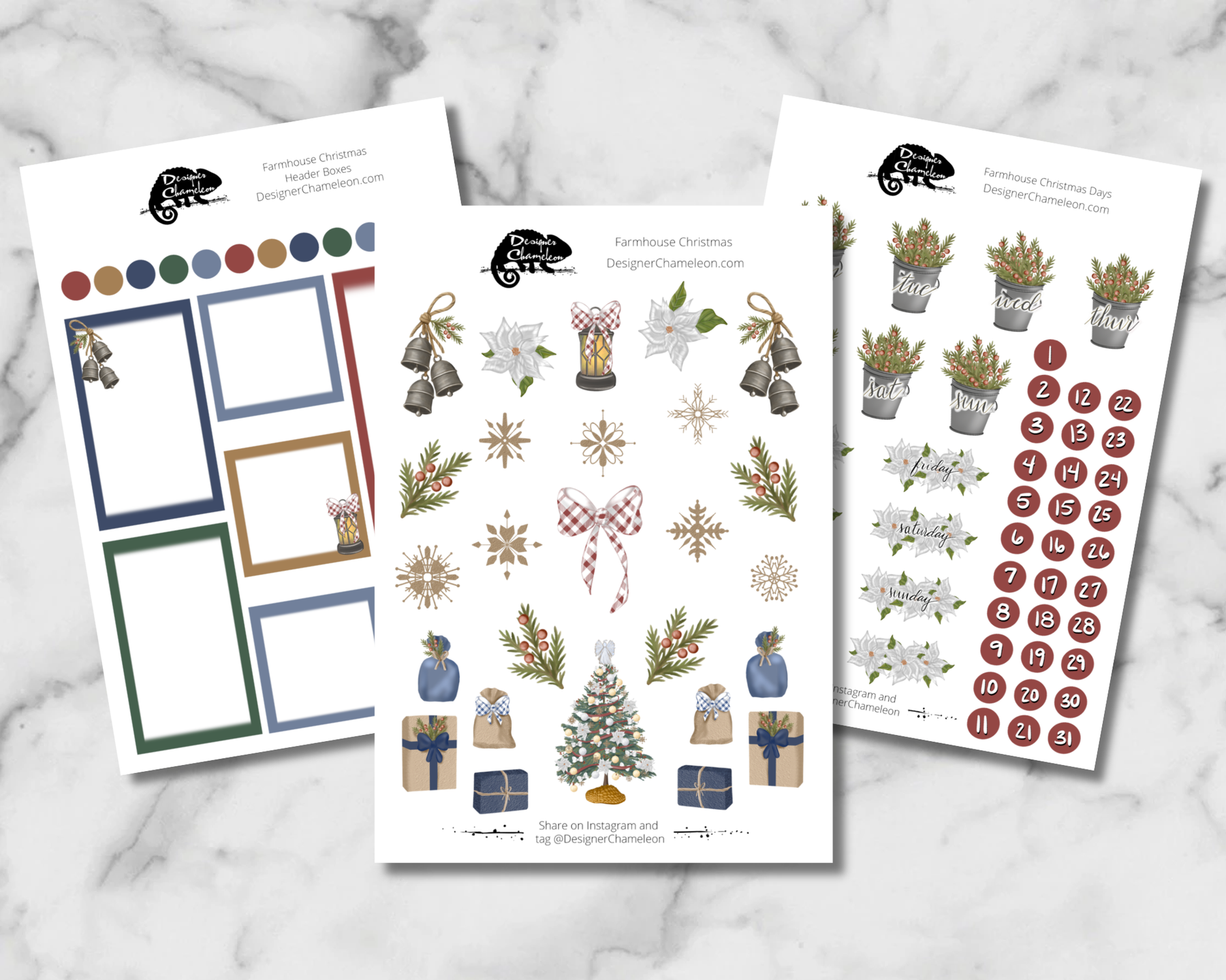 Farmhouse Christmas Sticker Collection for planners or bullet journals.