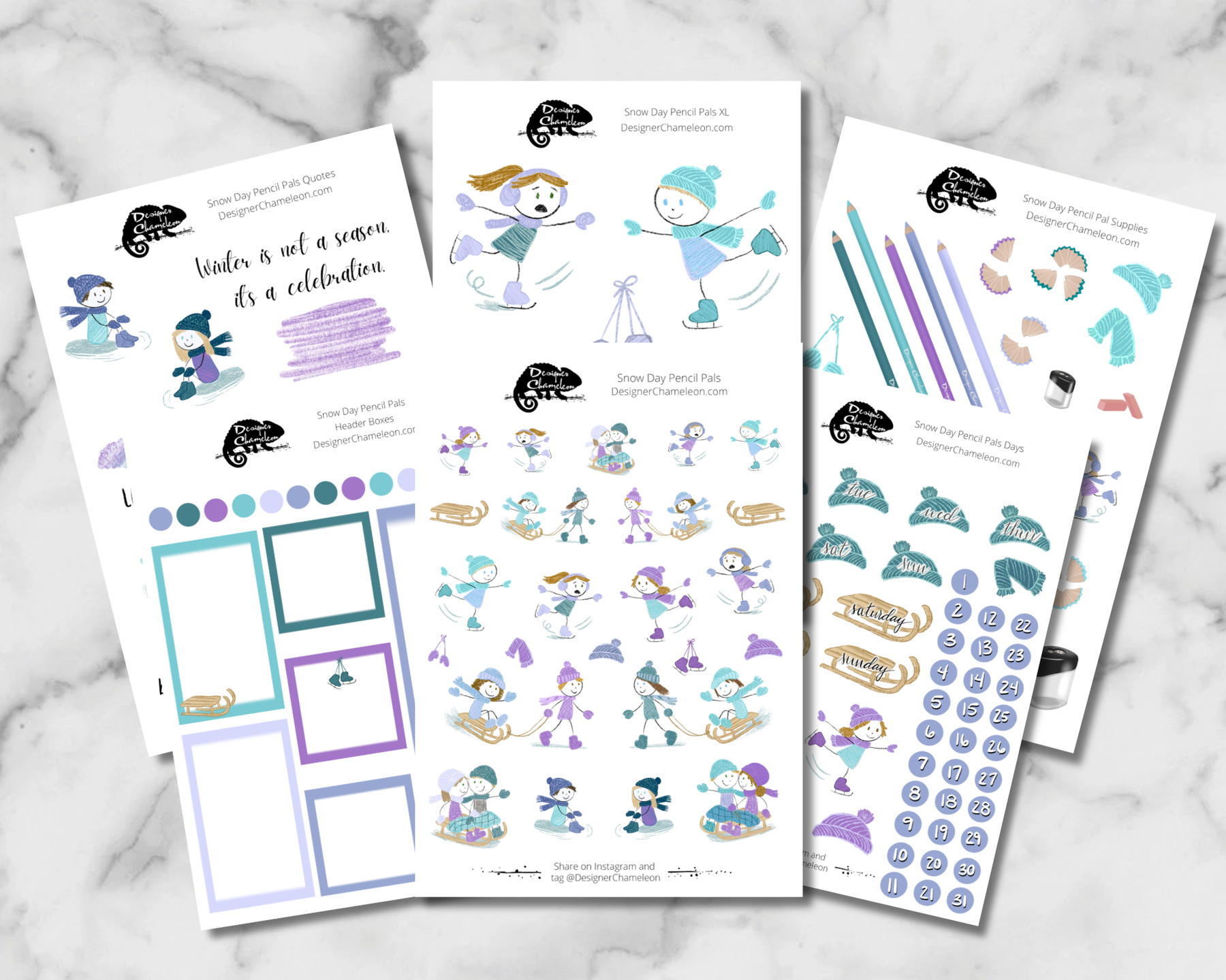 Snow Day Pencil Pals Sticker Collection for planners or bullet journals.