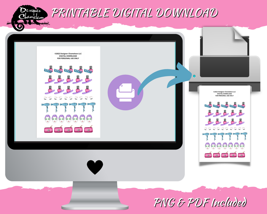 NO SHIPMENT: This is the DIGITAL DOWNLOAD version of a Designer Chameleon sticker sheet to be used in your digital planner or printed out at home.