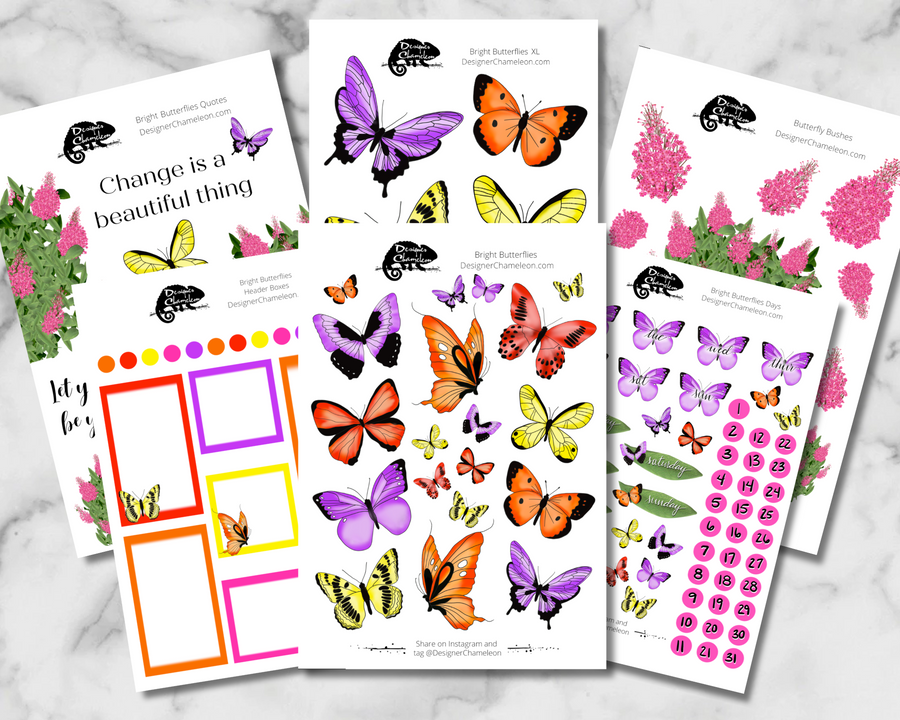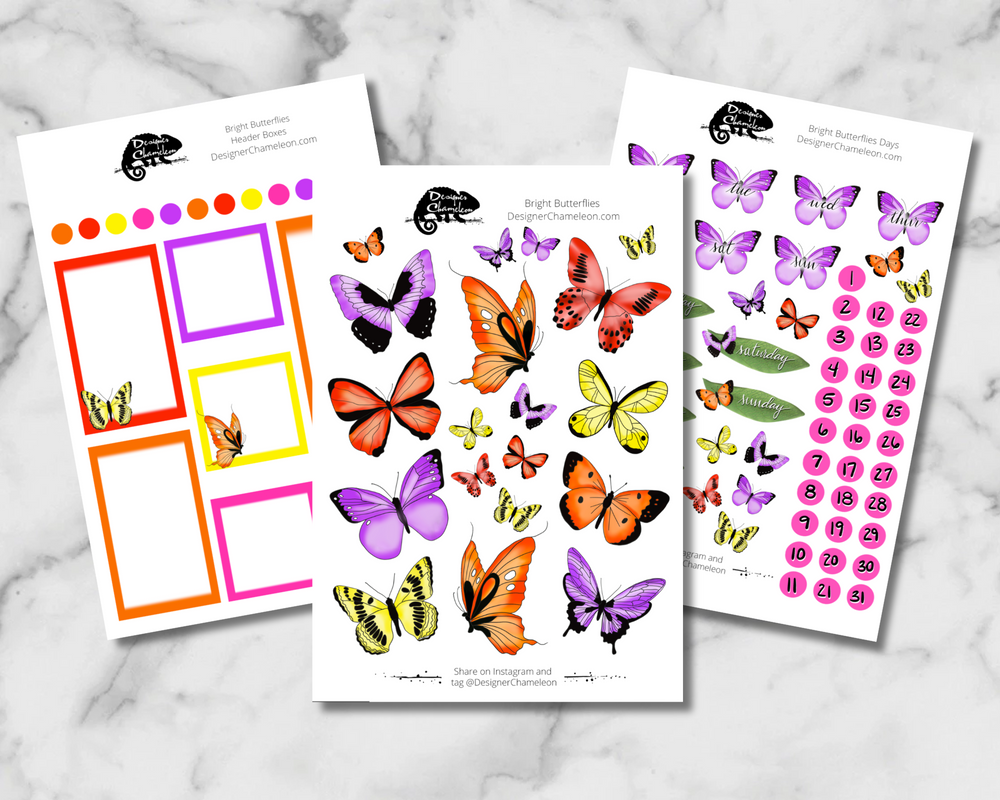 Bright Butterflies Theme Sticker Collection for planners or bullet journals