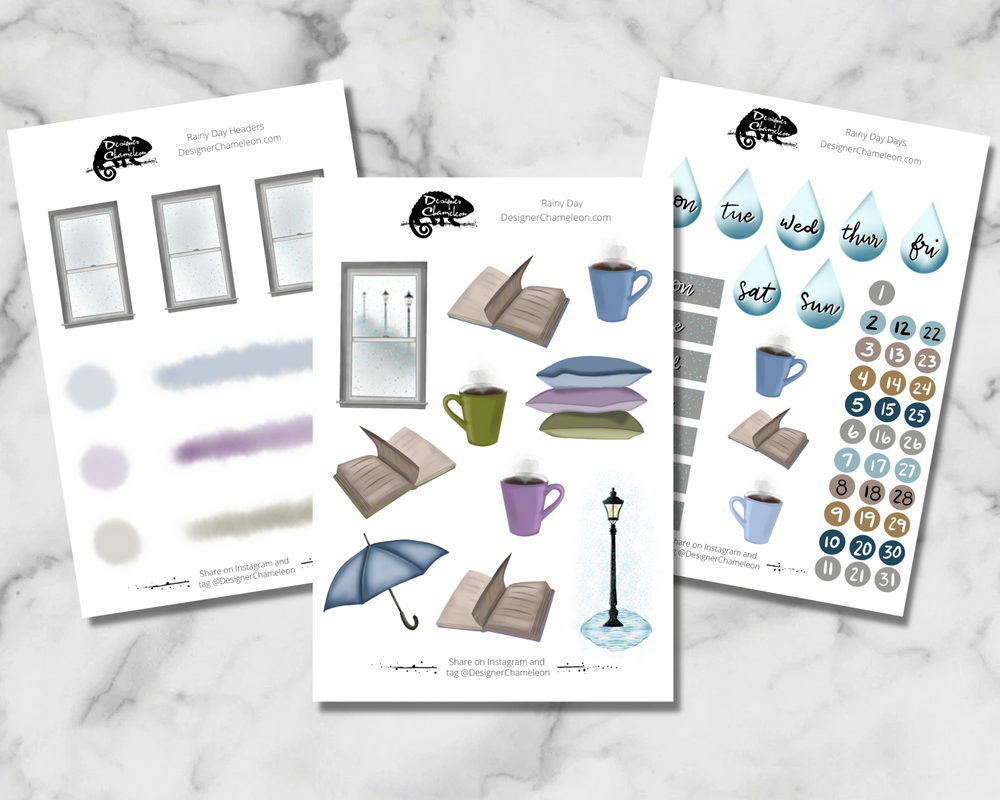 Rainy Day Theme Sticker Collection for planners or bullet journals